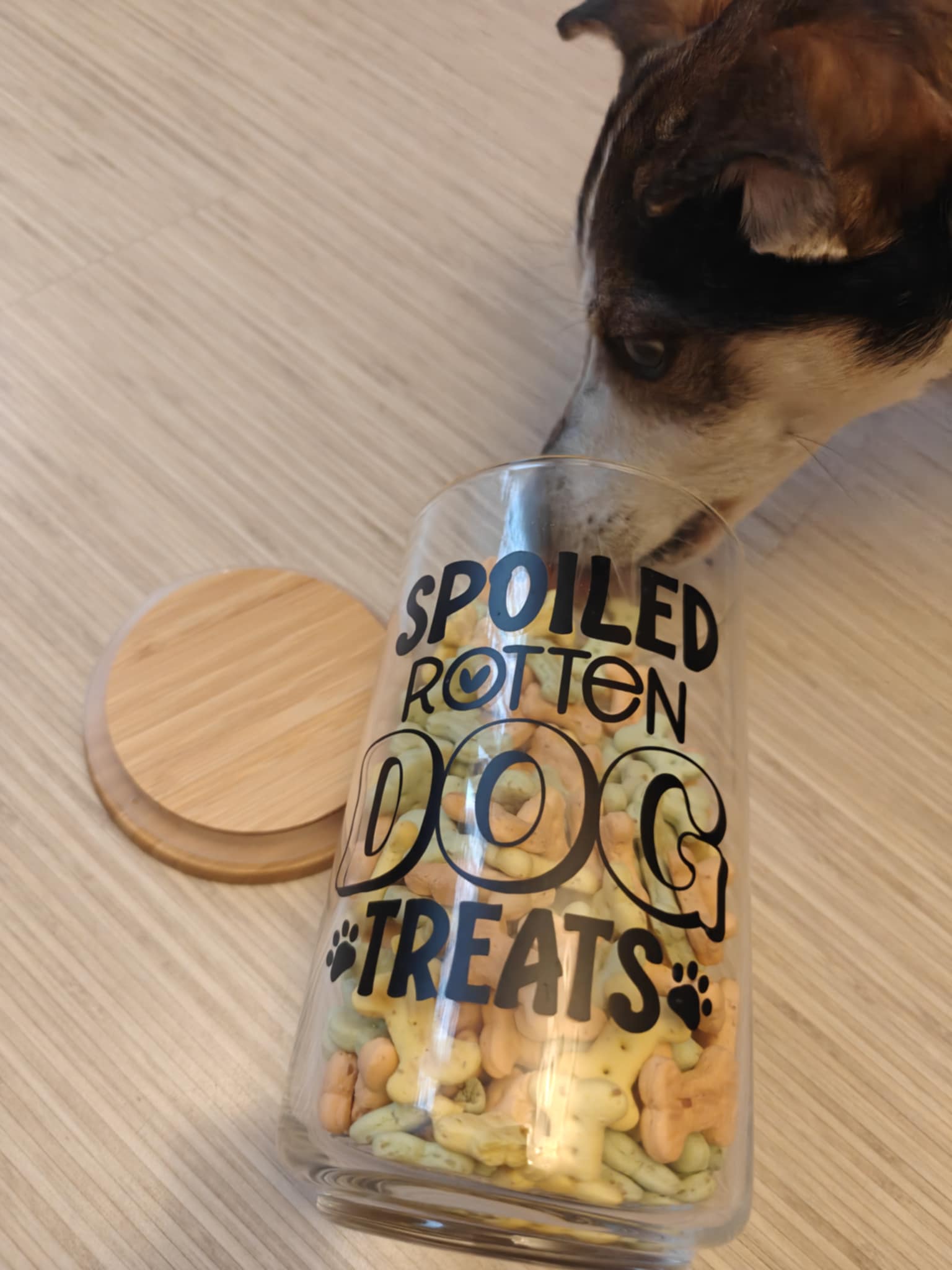 Keep your pet’s snacks fresh and stylish with our personalised glass treat...