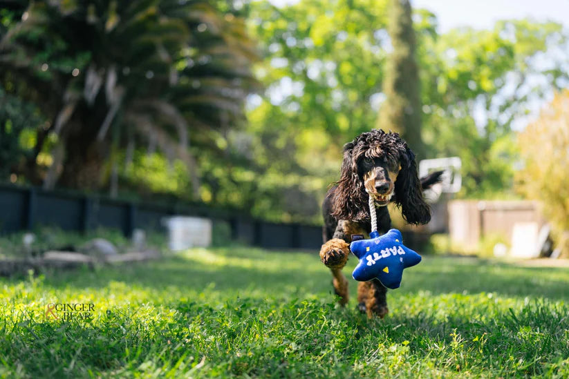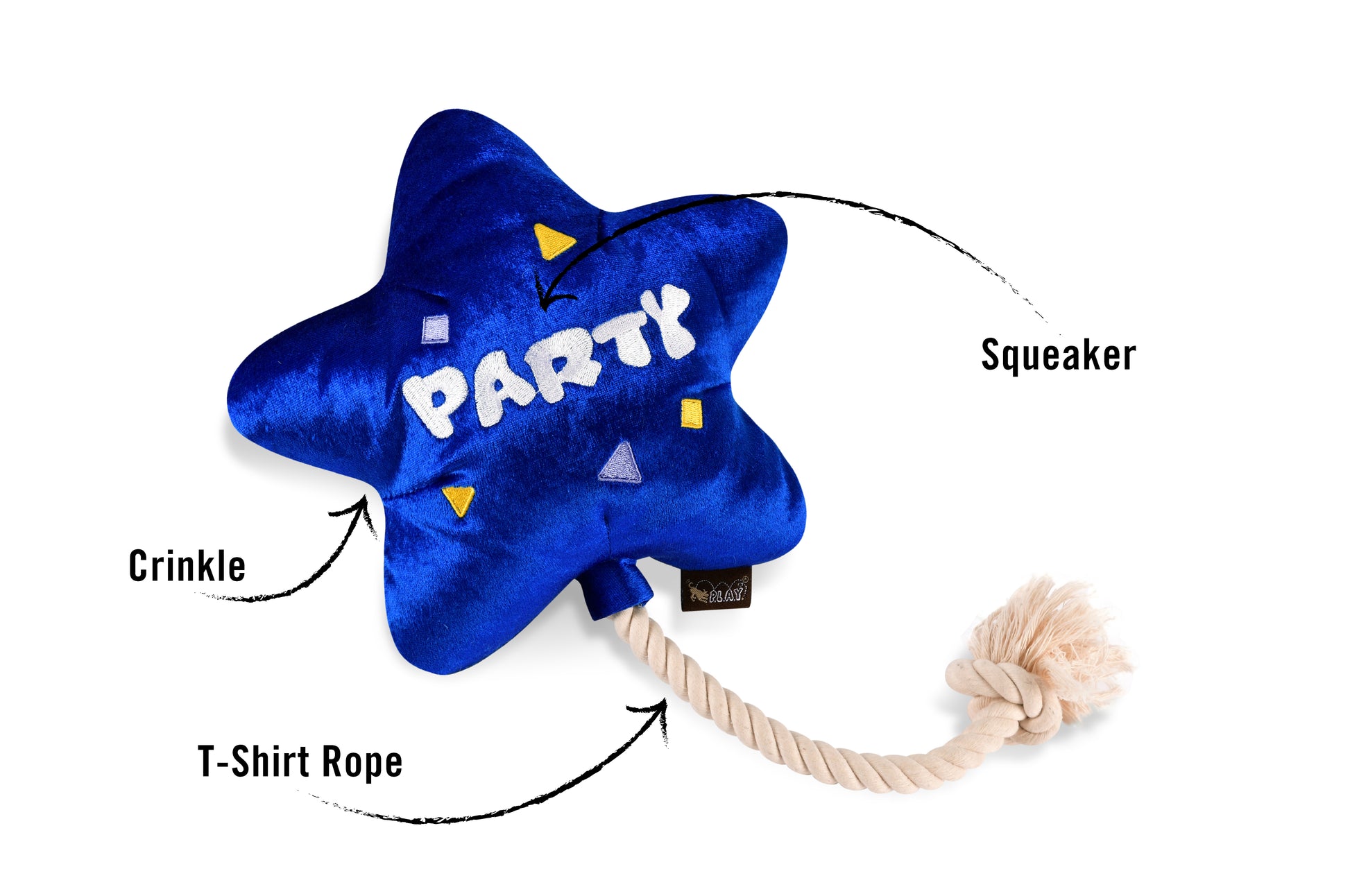 This squeaky, crinkly balloon is party-ready and comes with a t-shirt rope handle for a game of tug, fetch, or just a victory lap around the house. Perfect for birthdays, gotcha-days, or any day that deserves a little extra cheer.